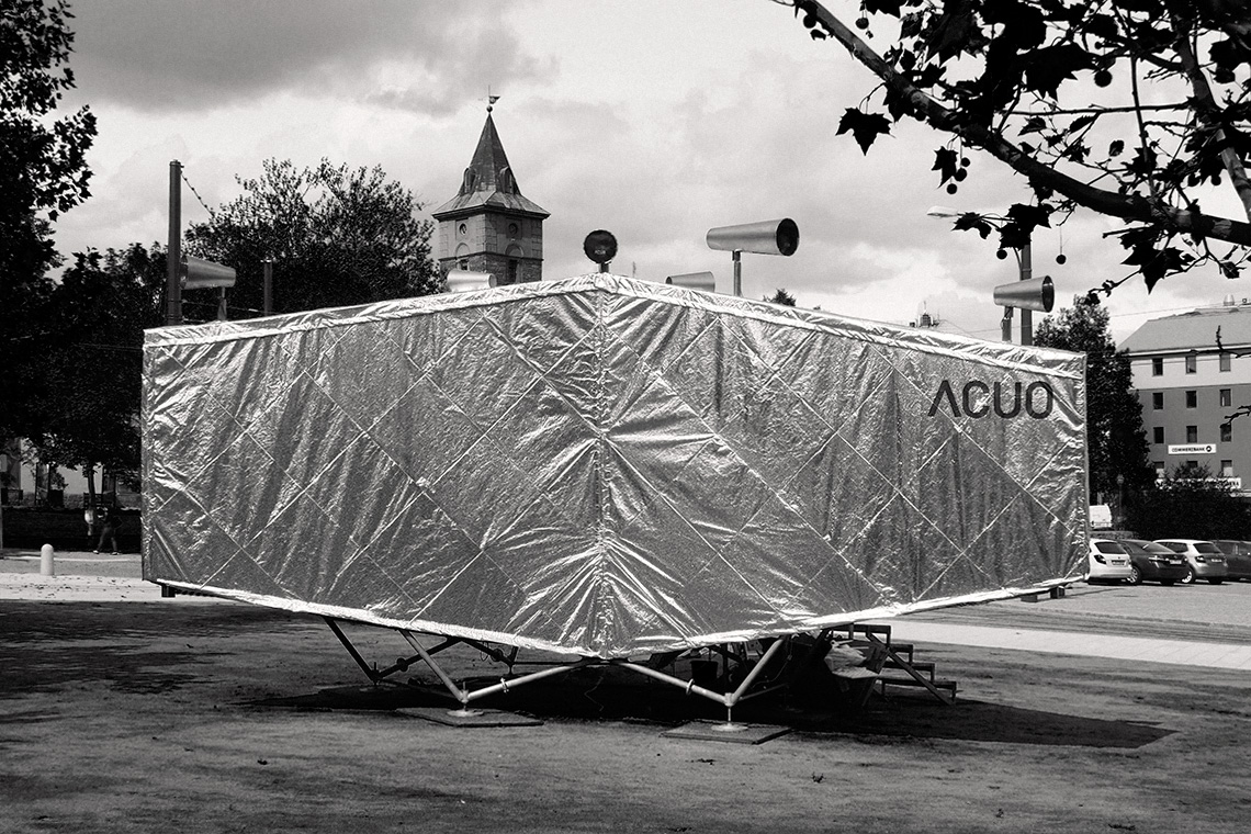 Michal Šebas ACUO – eine in der Innenstadt aufgestellte futuristische Skulptur, welche der Stadt zuhört, es künstlerisch verarbeitet und akkustisch und visuell wiedergibt. Auf der AudioVisualArt-Plattform Shape ist ein guter Artikel dazu.